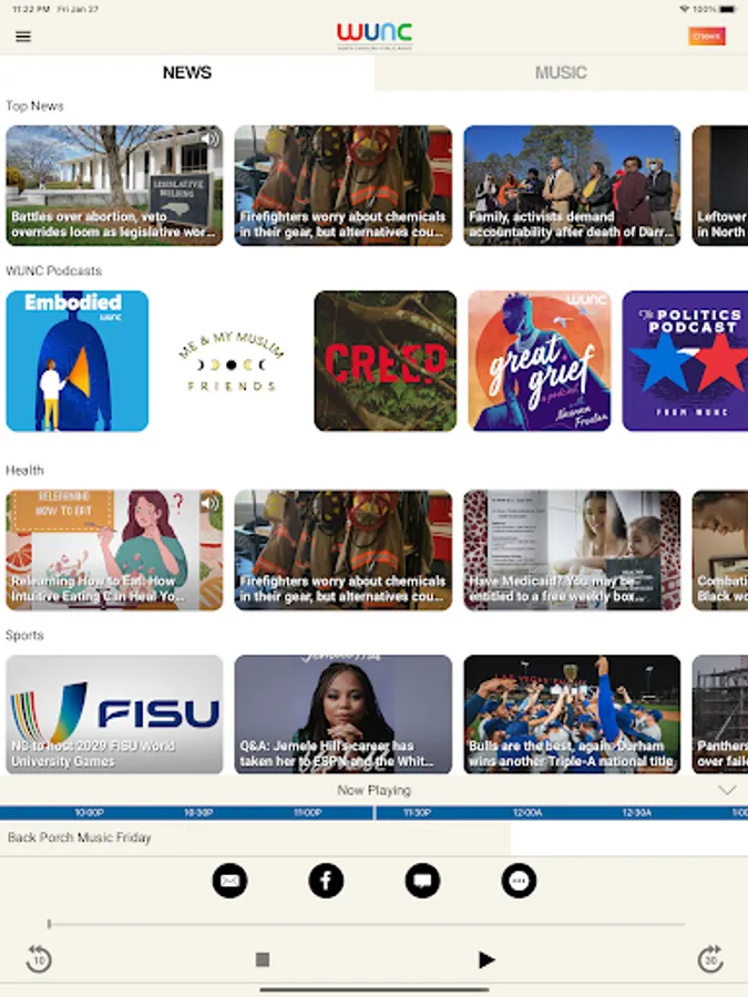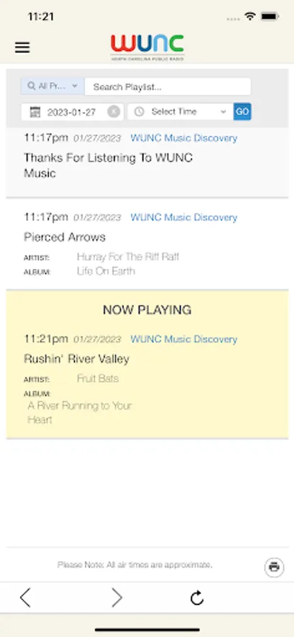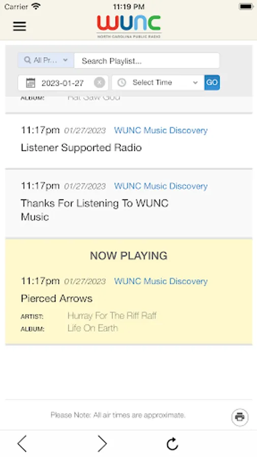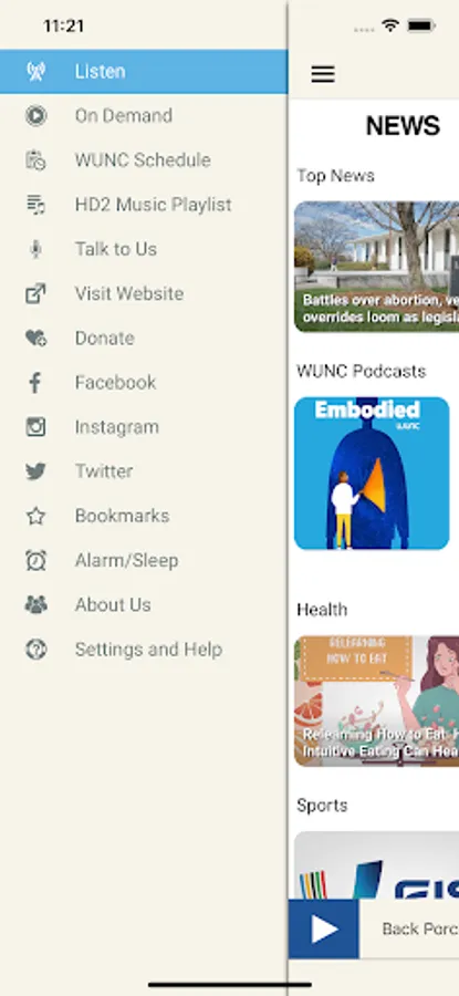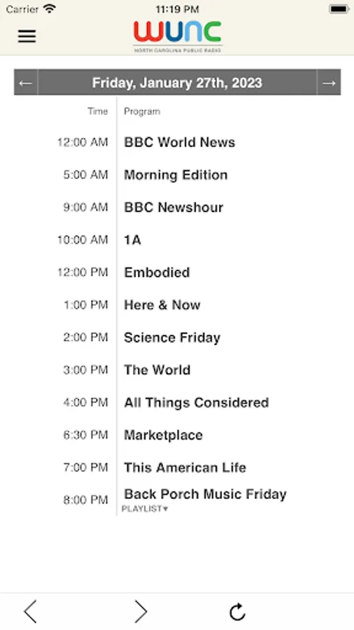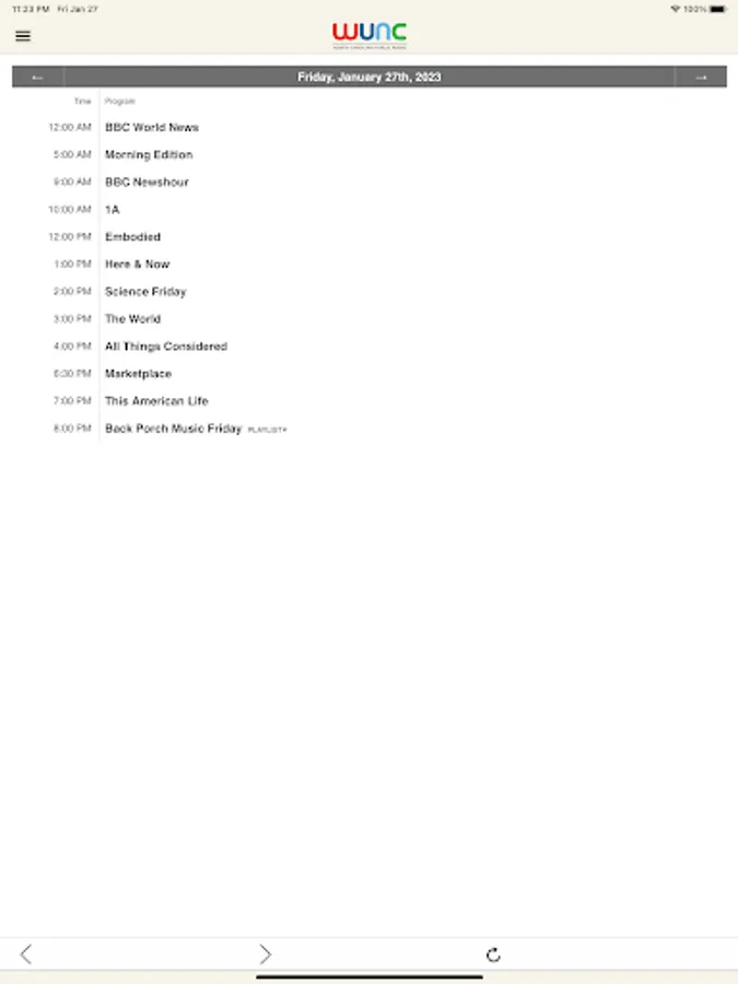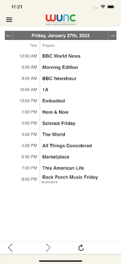• The WUNC Radio App displays the web page associated with the program or program segment you are listening to On Demand so you can explore for more information.