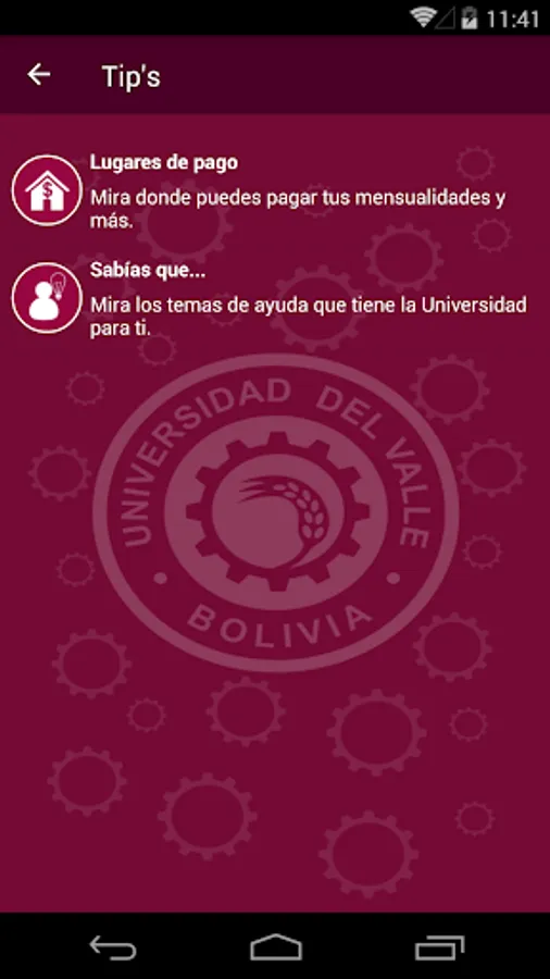 Mobile Univalle Father - is an application that allows relatives of a student access to academic information from the Universidad del Valle through an amazing experience developed for Android.