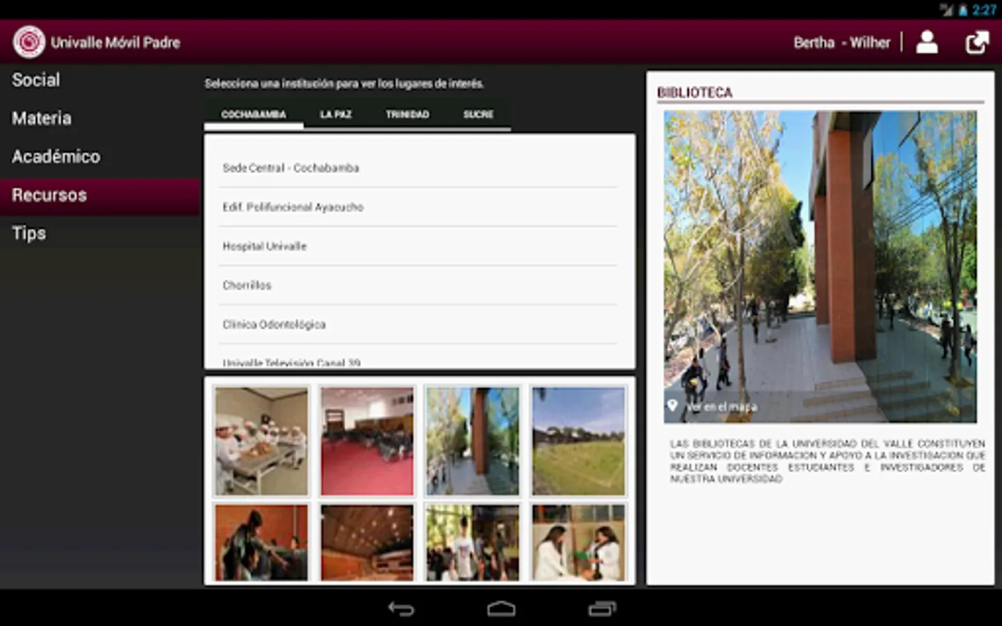 La información disponible a través de la aplicación está relacionada a: datos principales, asignaturas, horarios, información de aulas, plan de pagos, consultas de libros, estado del tiempo, sitios de interés, contactos, eventos, noticias, vitrina de descuentos y muchos más...