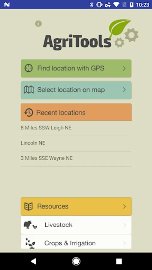 AgriTools provides easy access to location-specific climate and weather information important to the agricultural industry in Nebraska. Data from the High Plains Regional Climate Center, National Weather Service, and Nebraska State Climate Office allows the user to view recent data and forecasts for their current location or other desired locations. AgriTools also provides quick access to related University of Nebraska - Lincoln Extension apps and websites.