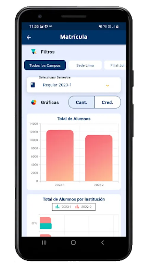Lamb Business is a reporting application, exclusively for the administrators (rectorate, deanship, administrative management) of our House of Studies - Universidad Peruana Unión, here they will be able to visualize the KPI (reports of enrolled and financial students) of the university in graphical form.