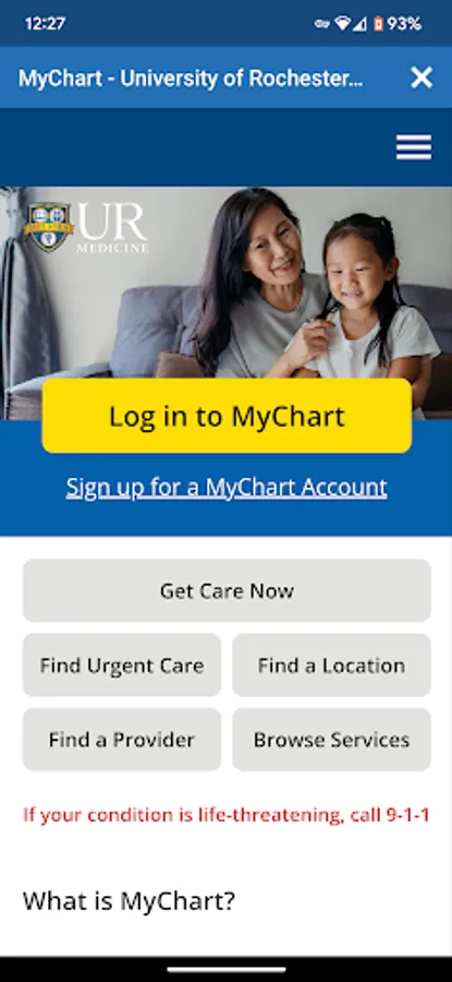 As a UR Medicine patient, you can use our MyURMedicine mobile app to access your MyChart, a free online tool, for UR Medicine patients, that gives you access to your medical record anytime, anywhere. The UR Medicine mobile app also helps you find and get directions to our hospitals, urgent care, imaging, and lab locations; view information on more than 1,300 of our specialists; and read up on the latest UR Medicine health and wellness information.