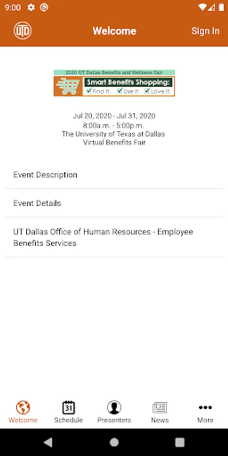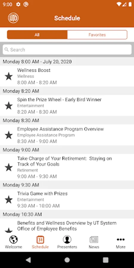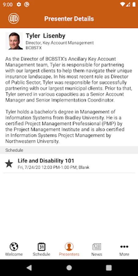 This app will give you access to your daily schedule of informative sessions. It contains a bio on each presenter and their sessions. News will also keep the user up-to-date on current events of the benefits fair.
