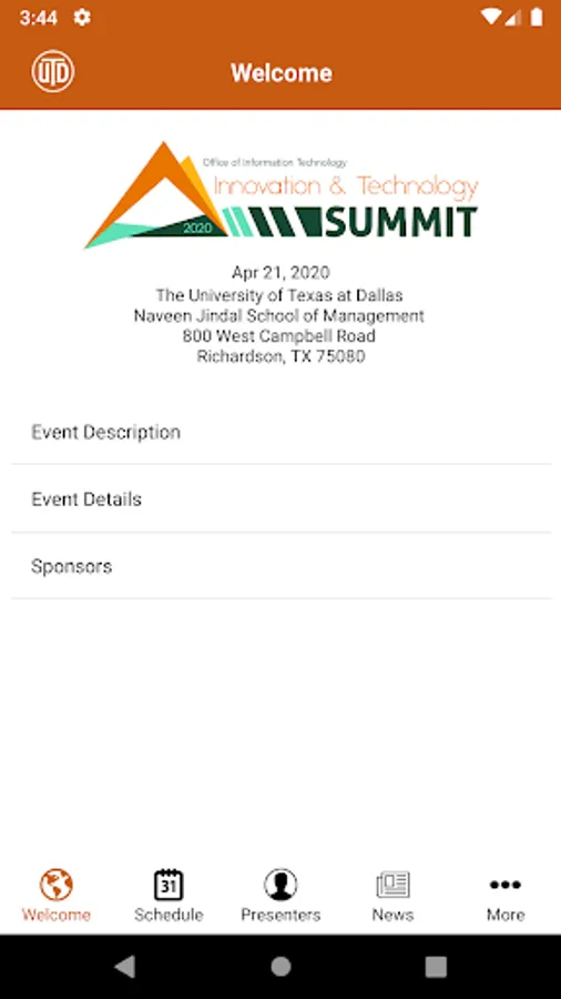 The University of Texas at Dallas' Office of Information Technology will host our inaugural Innovation & Technology Summit. The purpose of the summit is to bring together the innovators and consumers of information technology with a focus on research, teaching, learning, and tech support at University of Texas at Dallas to foster an environment of innovation.
