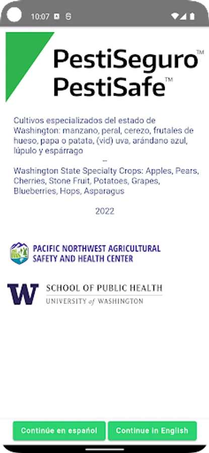 This app is produced by the Etiquetas bilingües de pesticidas or Bilingual Pesticide Safety project. We are part of the Pacific Northwest Agricultural Safety and Health (PNASH) Center, at the University of Washington School of Public Health.
