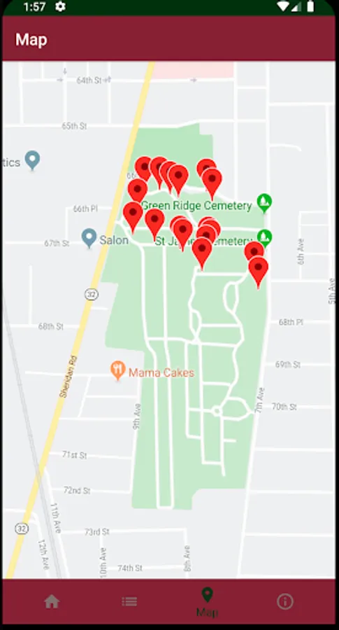 This app allows users to explore some of the more notable monuments at the Green Ridge Cemetery in Kenosha Wisconsin. It is the first cemetery i Kenosha. See the monuments and their locations one the map. Get historical information about the monuments. Get cemetery information.