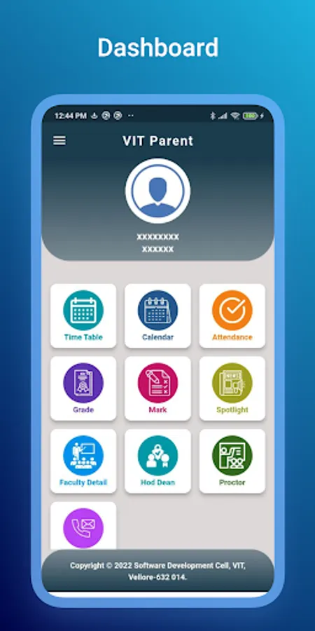 The APP is intended for parents of students admitted in VIT Vellore Campus. It helps them to get details such as academic activities (Attendance, Time Table, Exam Schedule, Grade Details), payment details, hostel details etc.
