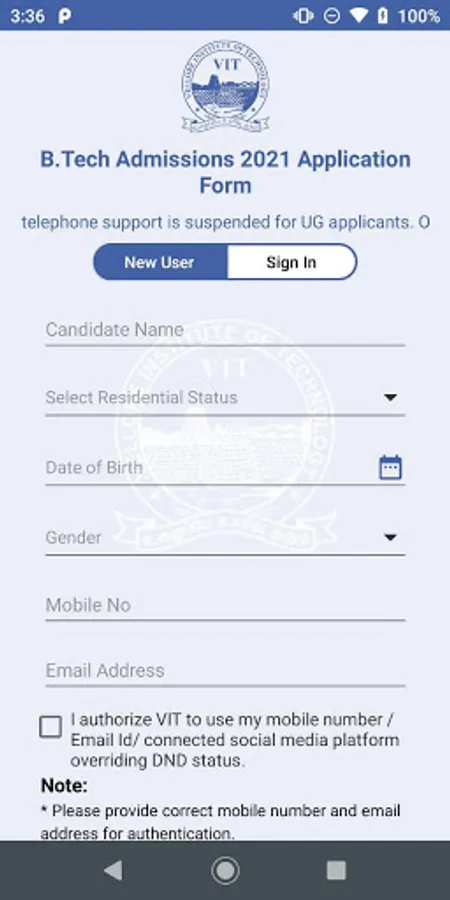 Sign Up for UG Engineering Admission with Required details in the signup screen.