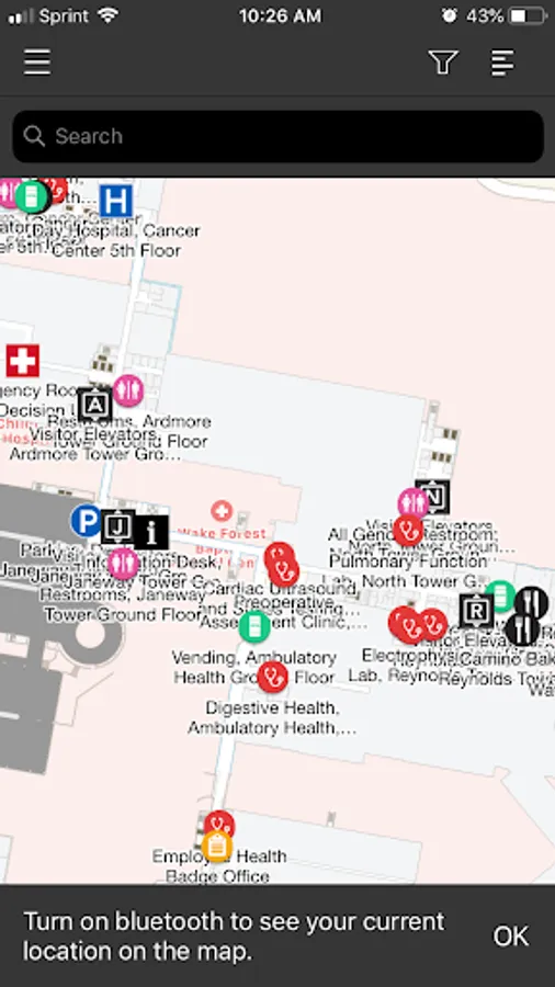 The Wake Forest Baptist Health Wayfinding app will help you navigate our hospitals both inside and outside the buildings. Customize your trip and get turn-by-turn directions right to your destination by following the blue dot as it helps you on your journey. Get directions from your current location to clinics, restaurants, restrooms and other important locations in the hospital .
