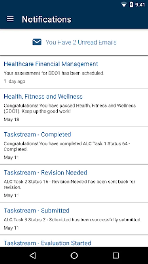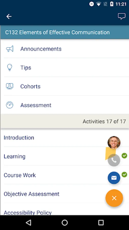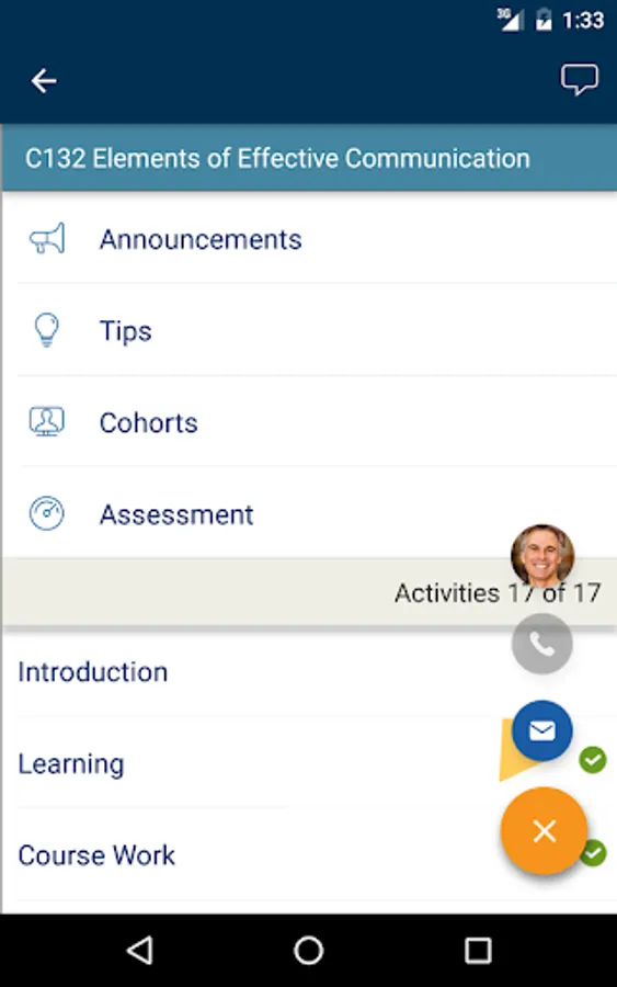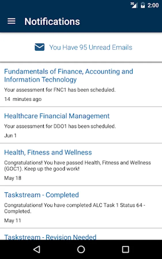 • Access all your courses, including being able to view Course Announcements, Tips, and Assessments
