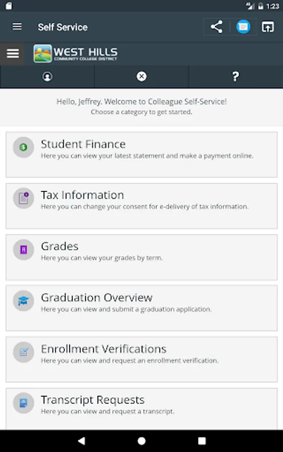 Accessing your West Hills College student information has never been easier. The myWestHills mobile app from West Hills College puts all your student information and self-service tools at your fingertips allowing you to manage your courses, email, and student profile, all from your mobile phone.