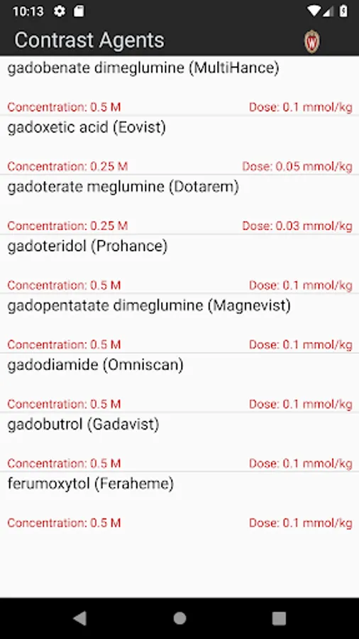 • Look up standard, and University of Wisconsin specific, doses for all FDA approved contrast agents