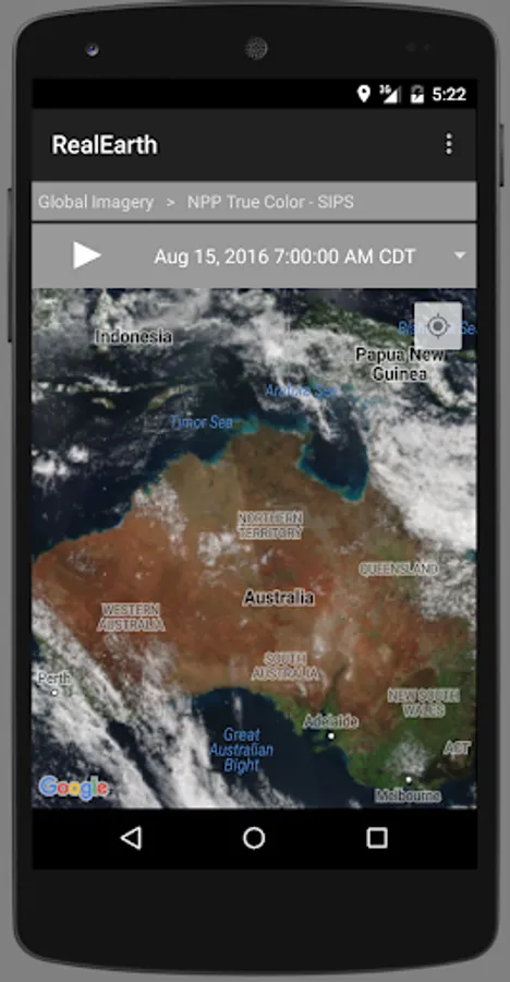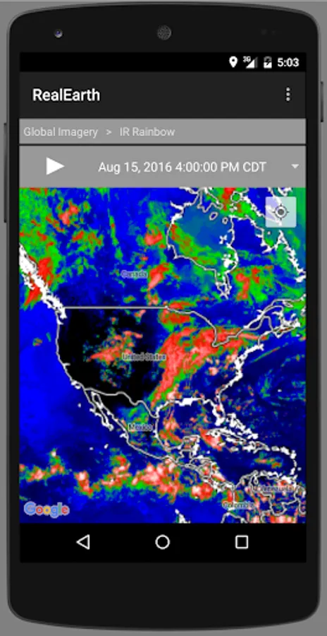 The RealEarth app provides access to real-time imagery and data products hosted by the University of Wisconsin - Madison Space Science and Engineering Center (SSEC). These products include global and regional remotely sensed atmospheric, terrestrial, and oceanographic imagery, observations of local meteorological parameters, and short-range predictions of future conditions. Features include: