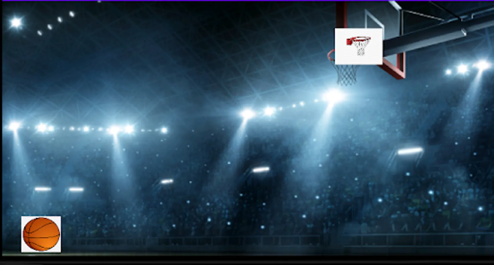 A basketball game that allows users to shoot baskets to a basketball hoop with the touch of a basketball.