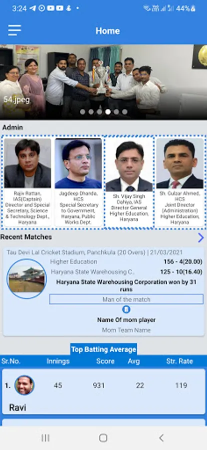 Dr. Kuldeep Singh Beniwal, the then Deputy Director working in the Directorate of Higher Education, gave full cooperation in preparing this team. Team Coordinator and Team Operation was done by Mr. Dinesh Kaushik, Captain. A net was installed in the rear of the directorate for the practice of the team. Thereafter the team got full support from Shri Rajiv Ratan, IAS then Director, Secondary Education. Shri Rajiv Ratan, IAS made special arrangements for good pitch and lights on the net so that the team of Directorate did not face any kind of difficulties during the practice. With the approval and cooperation of Shri Vijay Singh Dahiya, IAS, the then Director General of Higher Education, in the financial year 2019-20 (November to February), a cricket tournament was organized by the Directorate of Higher Education for the employees working in the Directorates and Board Corporations of Haryana State. Teams from 16 departments participated.