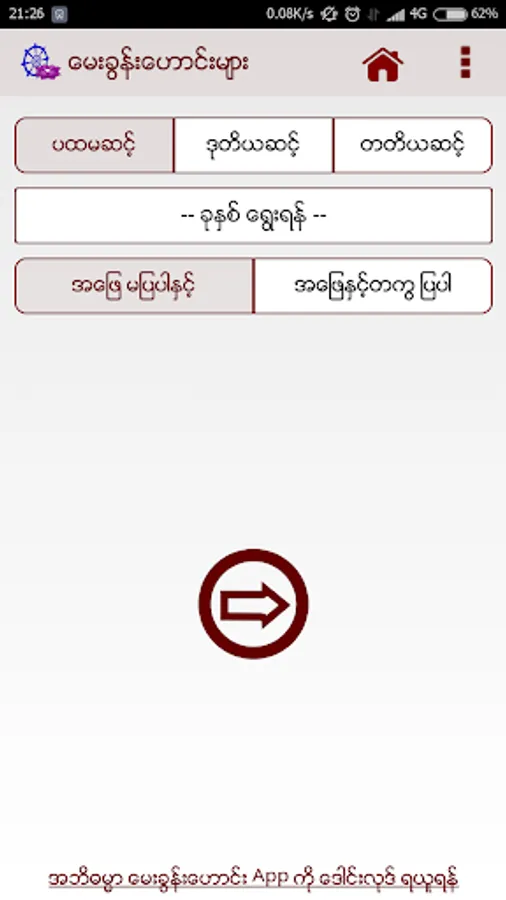 ထူးျမတ္လွေသာ ဗုဒၶေန႔ အထိမ္းအမွတ္ျဖင့္ ျမတ္စြာဘုရားရွင္ ကိုယ္ေတာ္ျမတ္ႀကီးႏွင့္တကြ အနေႏာၱအနႏ ၱငါးပါးကို ရွိခိုး ပူေဇာ္ေသာအားျဖင့္ ဋီကာေက်ာ္ (အဘိဓမၼာဂုဏ္ထူးေဆာင္) ေမးခြန္းဘဏ္တိုက္ (TikaQB - Android Version) ကို ကဆုန္လျပည့္ေန႕တြင္ မွ်ေဝ ဒါနျပဳပါသည္။