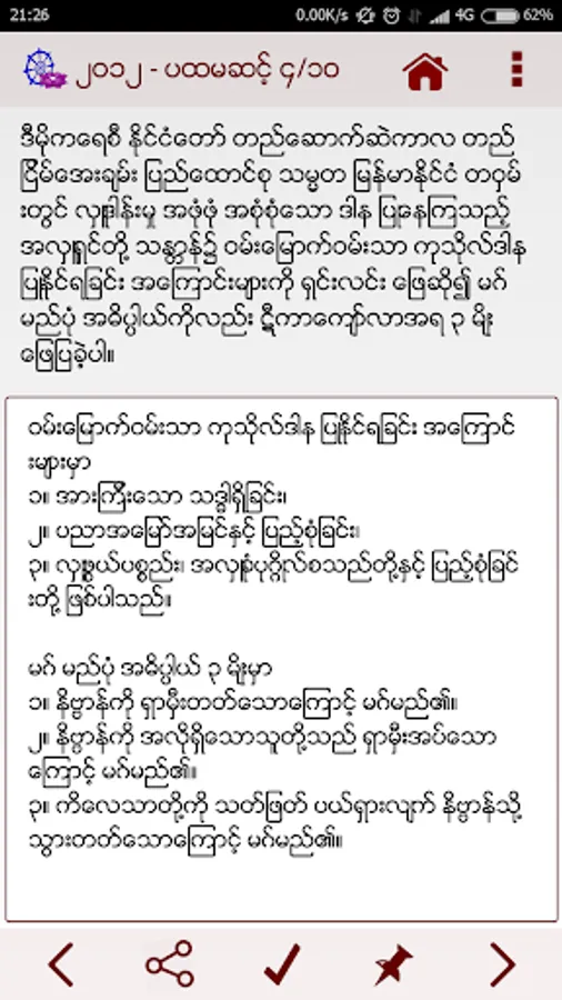 ဤအမေးအဖြေ မေးခွန်းဟောင်းများကို ဓမ္မဗျူဟာ ဆရာမကြီး ဒေါ်ခင်လှတင်၏ မေးခွန်းဟောင်း စာအုပ်များမှ ကူးယူ ဖော်ပြခြင်း ဖြစ်ပါသည်။