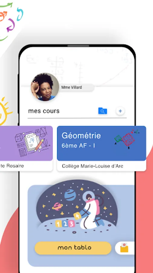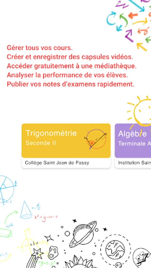With Tablo, the Prof efficiently manages his different courses in the same school or in different schools. it can, in the application, create and record video clips for students to explain, demonstrate a lesson, summarize a course, complete explanations seen in class, etc.