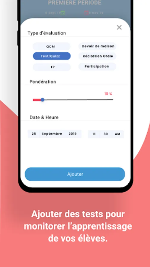 With Tablo, the Prof enters exam and test scores and sends them to the school administration in one click.