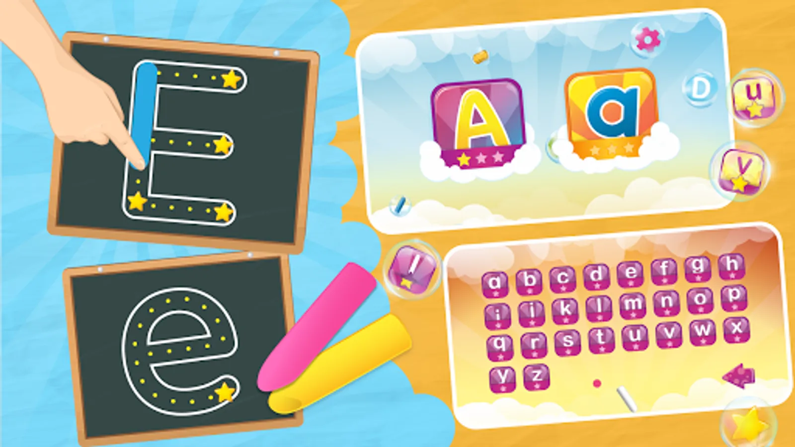 Learn to write English Alphabet by tracing ABC guides the kids to practice English alphabet & letters without any supervision of parents or guardians.