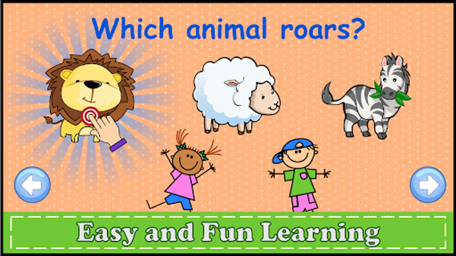 Selecting game is an interactive learning game designed to help toddlers and preschoolers learn various subjects like animals, colors, shapes and numbers with lovely and attractive design and animations with fun sounds.