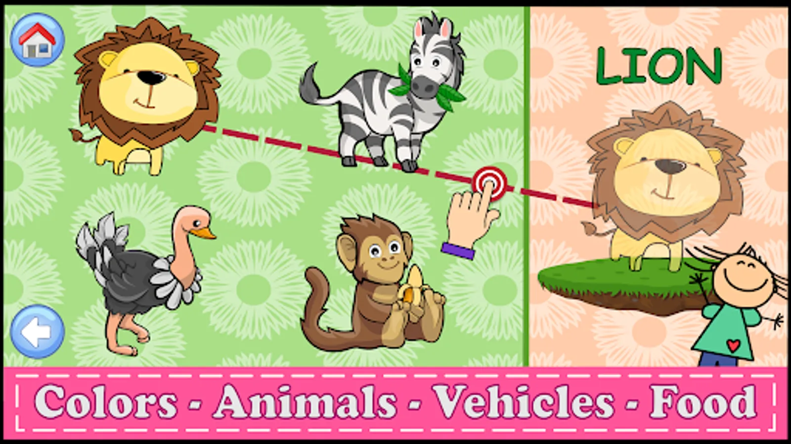 This app is a nice and fun way to teach kids colors, numbers, animals, food, vehicles, professions and different objects.