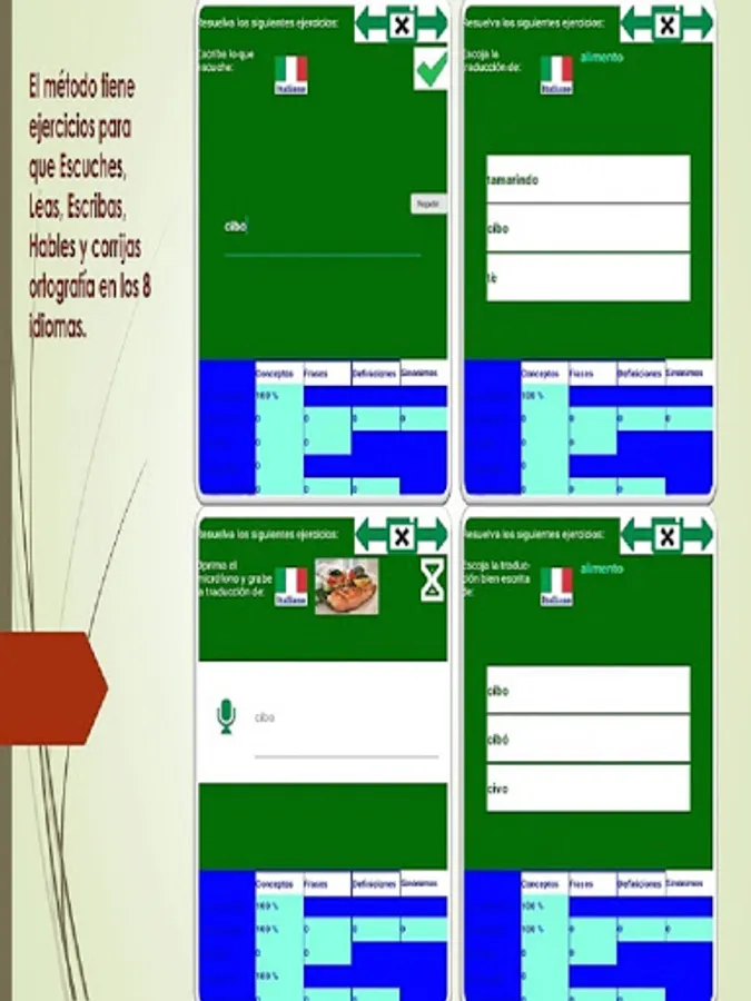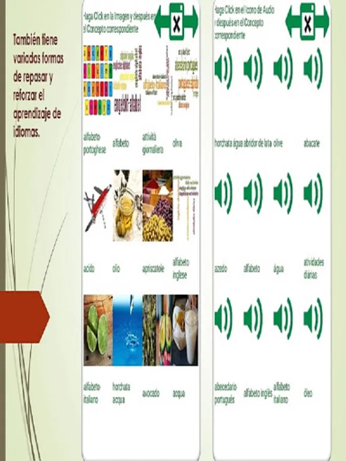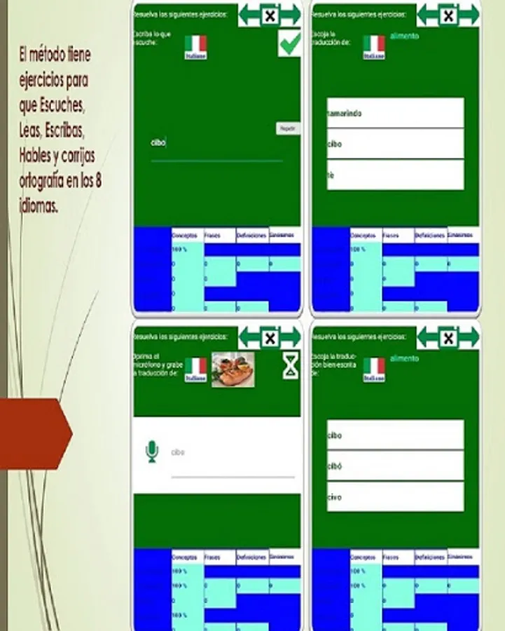 They stimulate and develop the learning capacity of the brain using various cognitive stimuli. Simple Concepts are presented with translations in up to EIGHT languages, with phrases, synonyms, definitions, dialogues, readings, complements and activities, which guarantee language learning.