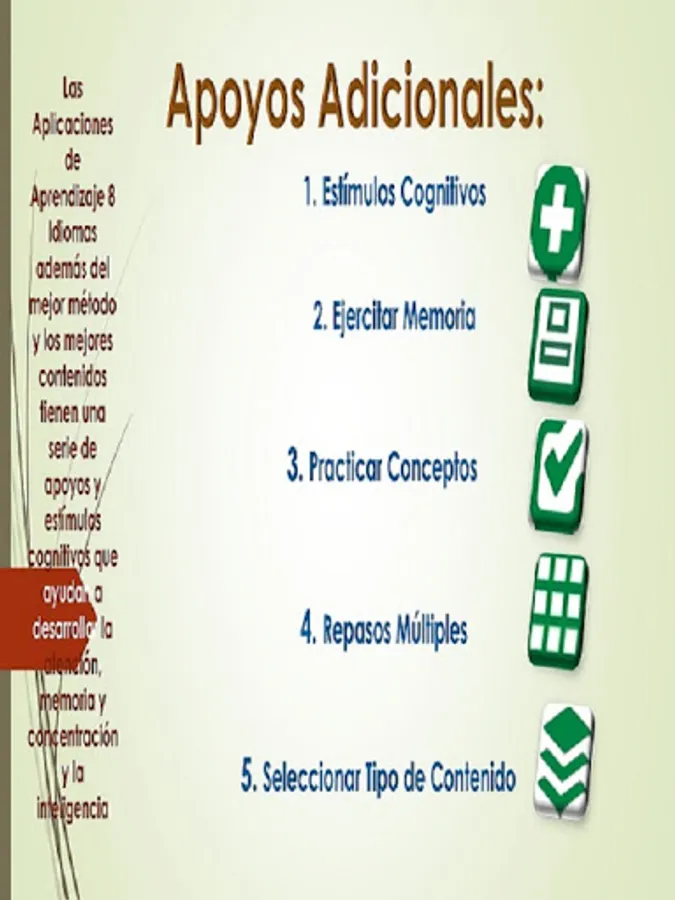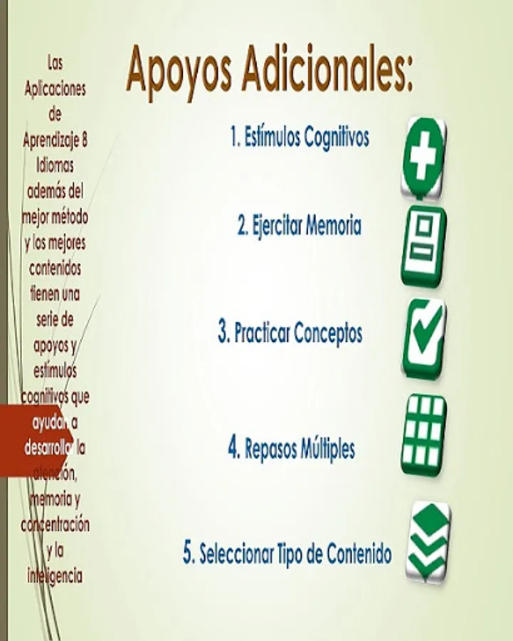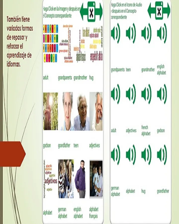 They stimulate and develop the learning capacity of the brain using various cognitive stimuli. Simple Concepts are presented with translations in up to EIGHT languages, with phrases, synonyms, definitions, dialogues, readings, complements and activities, which guarantee language learning.
