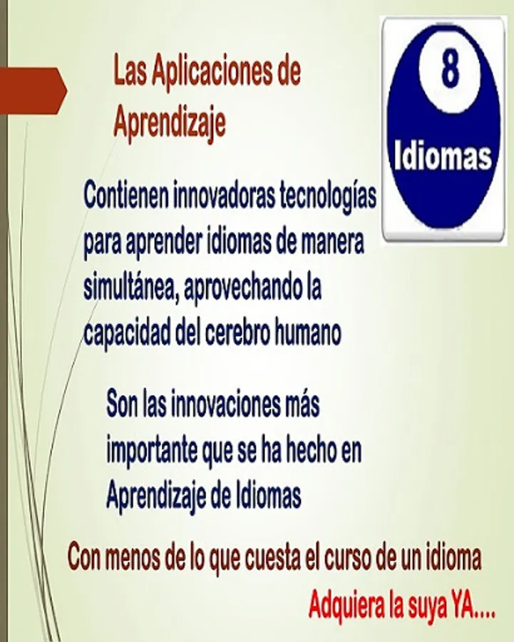 The 8 Languages Learning applications are a new Method and Technology that help the development of people and provide the opportunity to learn and practice languages anywhere and at any time.