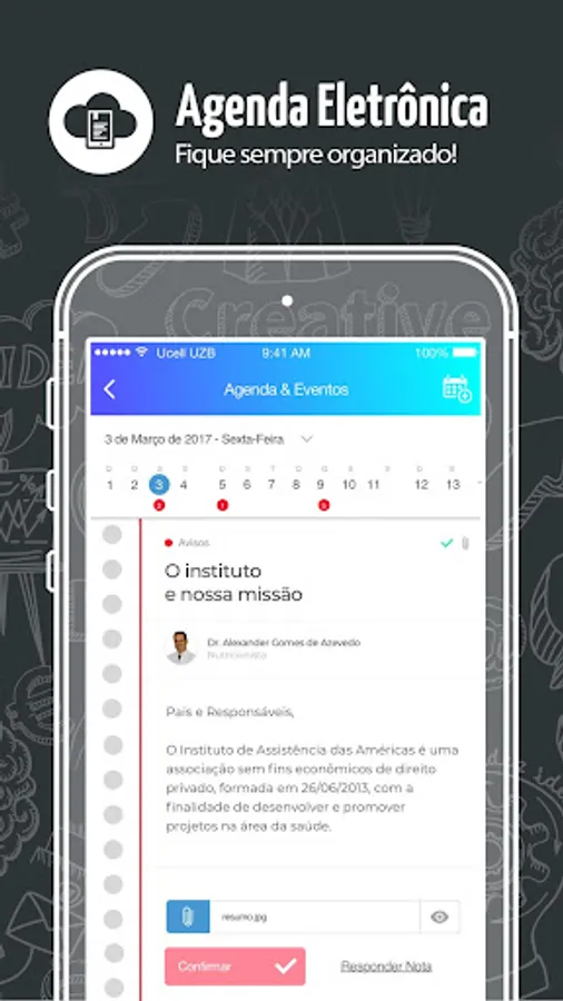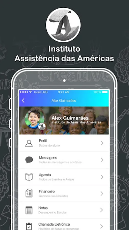 Application that aims to bring parents and students to school. The Assistance Institute of the Americas Platform was developed thinking of the agility of communication between parents, students and the school structure, leaving behind the traditional agenda.