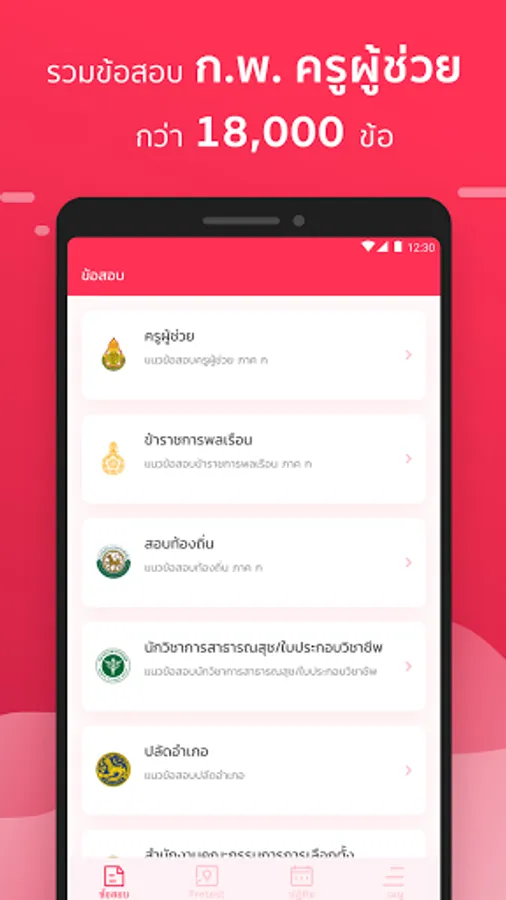 “สอบติดข้าราชการ” ช่วยได้ แอปพลิเคชันที่รวมข้อสอบออนไลน์สำหรับสอบเข้ารับราชการพร้อมเฉลยละเอียด วิเคราะห์จุดแข็งจุดอ่อนในการทำข้อสอบเพื่อเพิ่มโอกาสในการสอบติดให้มากขึ้น ยิ่งทำข้อสอบเยอะโอกาสในการสอบติดยิ่งมีมากขึ้น