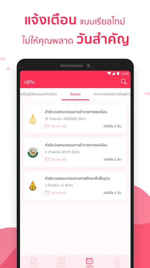 - มีระบบ notification เรื่องการสมัครสอบและวันสอบทั่วทั้งประเทศ เพื่อจะไม่พลาดในการสมัครและการเตรียมตัวสอบ