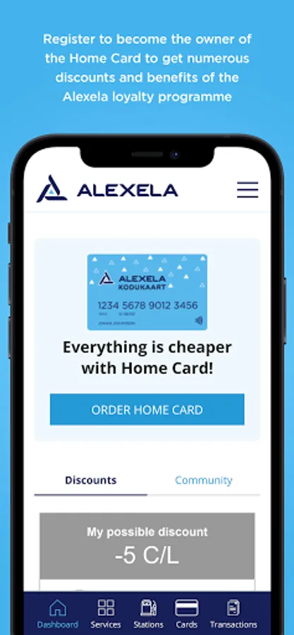 - Register to become the owner of the Home Card to get numerous discounts and benefits of the Alexela loyalty programme