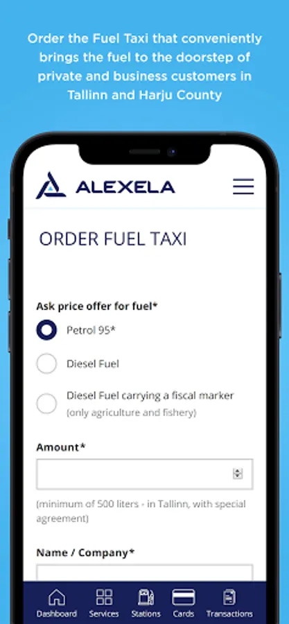 - Order the Fuel Taxi that conveniently brings the fuel to the doorstep of private and business customers in Tallinn and Harju County