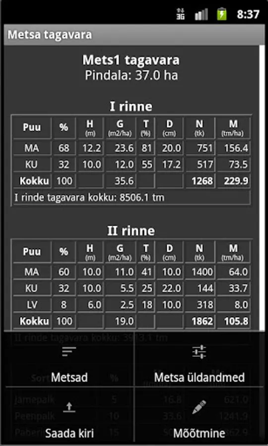* metsa tagavara puuliikide lõikes mõõdetavas puistus