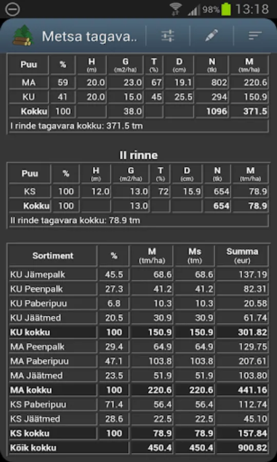 Tarkvara võimaldab mõõtmistulemuste sisestamist, salvestamist ja kohest arvutustulemuste vaatamist. Selle abil on metsakalkulaator alati kaasas.