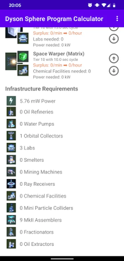 This tool takes some of the confusion out of playing. DSP displays different information in different UI which can make it hard to calculate how the cycles fit together. This app converts everything to per-minute quantities and calculates the true tiers of production so you know what needs building in order.
