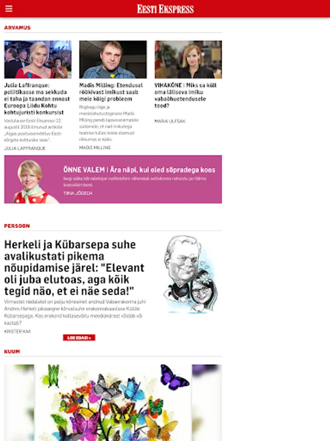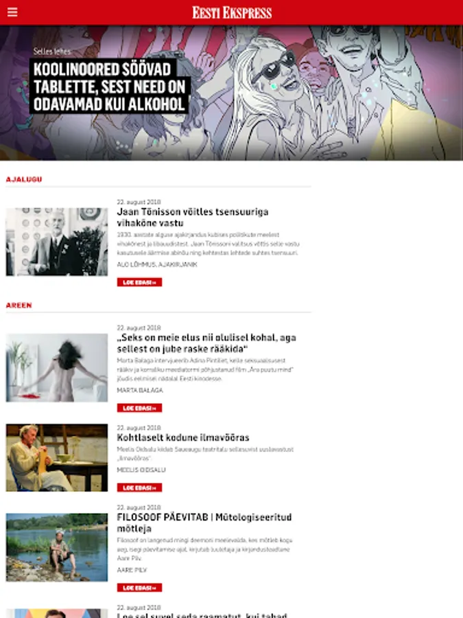 For over 29 years, Eesti Ekspress has brought the readers the most revealing, courageous, more surprising, emotional and independent stories. The strongest editorial office in Estonia is working hard every week to find the most influential and interesting topics for people.
