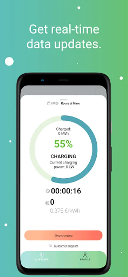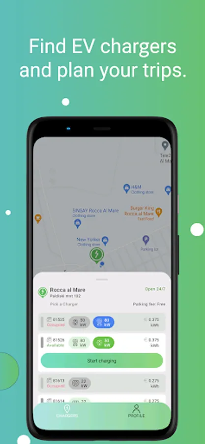 - map updates in real-time; you can see whether the charger is in use, free or in maintenance