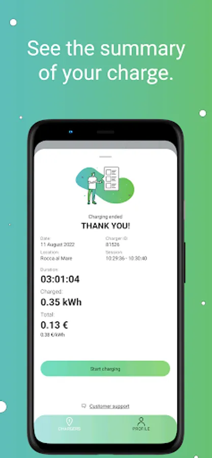 - see the progress of charging; how many kWh have been charged, how long have you charged, what is the battery percentage and charging power