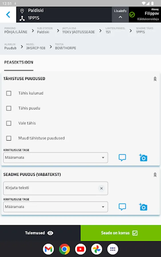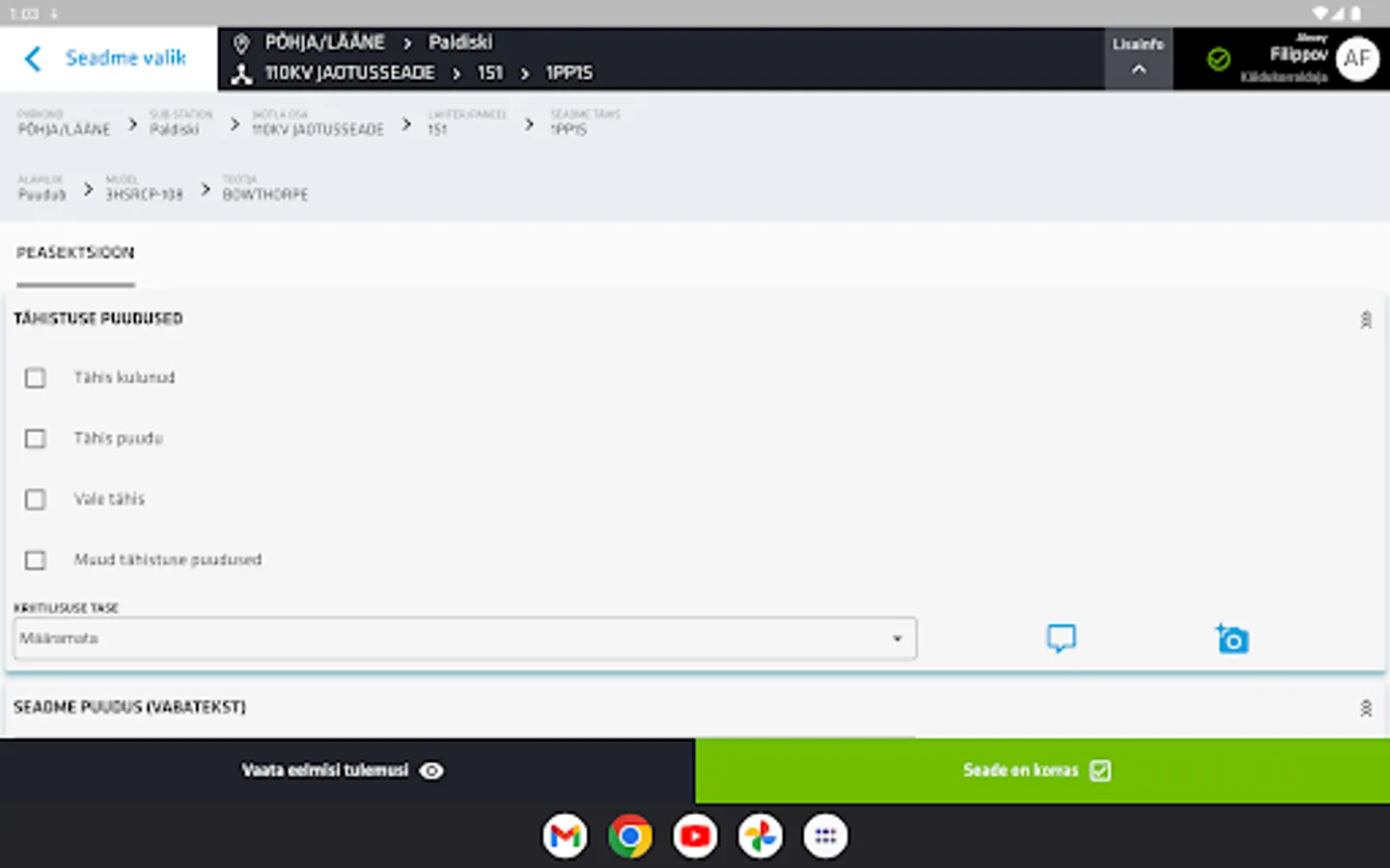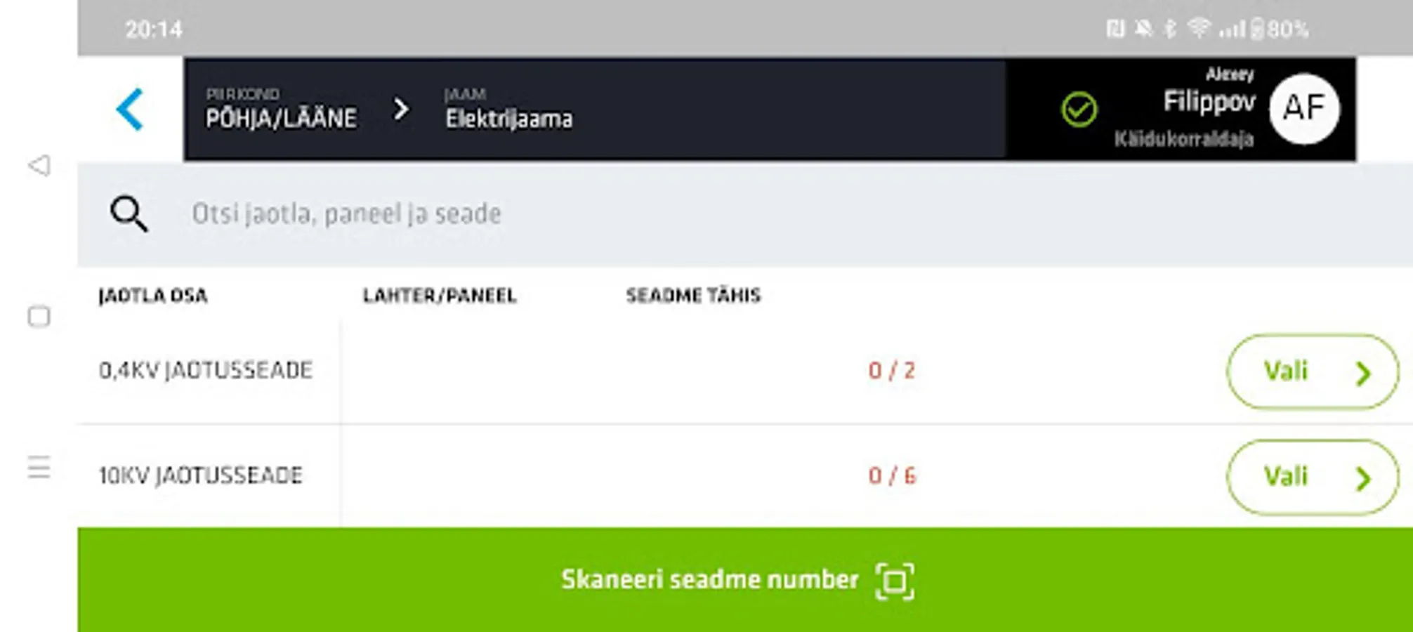 Application developed by Elering AS to enable employees and contractors to verify energy systems.