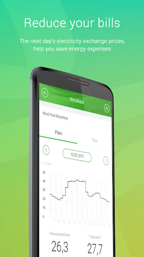 The next day’s electricity exchange prices displayed by the app help you save energy expenses, for example by timing your household appliances to function at those times with the lowest prices. By planning your consumption on the basis of actual exchange prices of electricity, you can directly influence your electricity bill. The larger your household and house, the more tangible the results of economical electricity consumption.