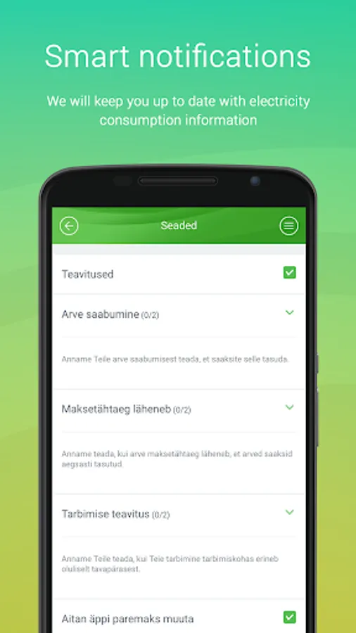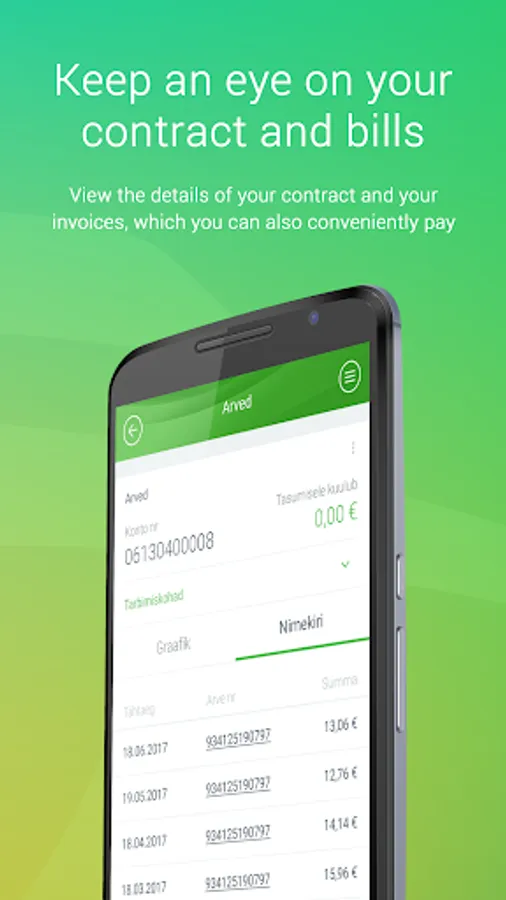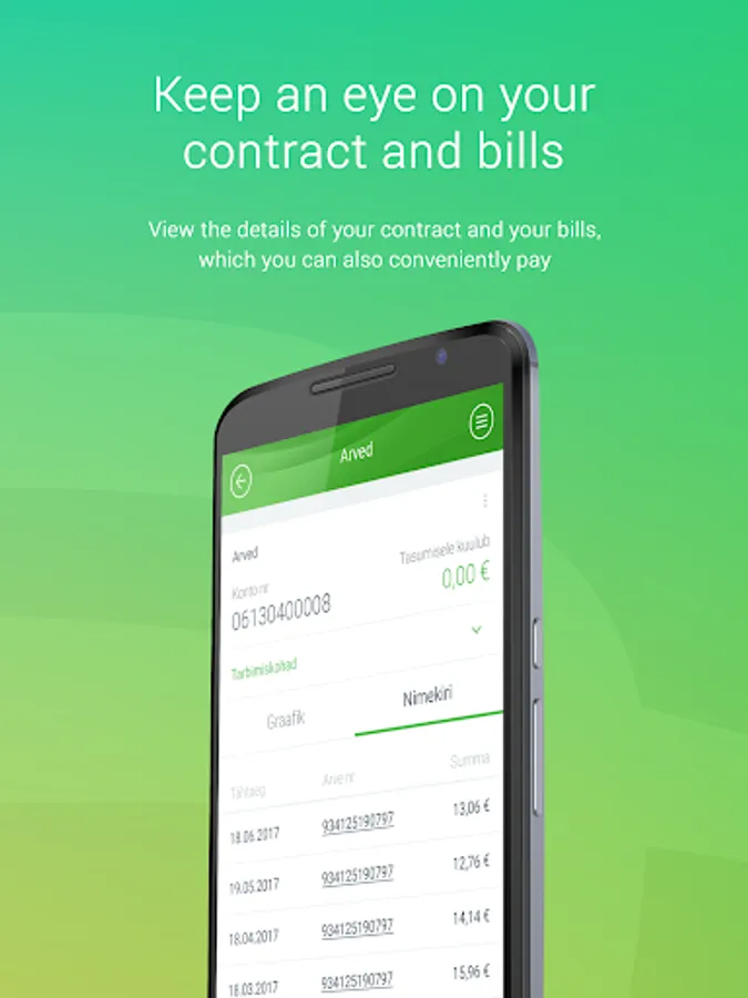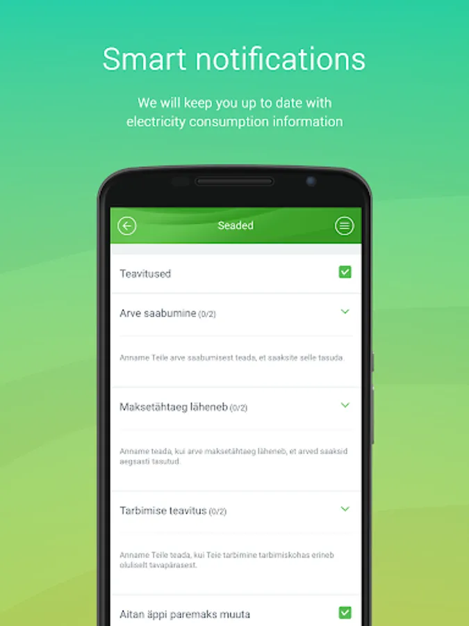 Your consumption information, electricity contract, bills and Eesti Energia contact details are easy to access from anywhere using the mobile app. The Eesti Energia mobile app can be used by all residential and business customers of Eesti Energia and universal service customers of Elektrilevi.