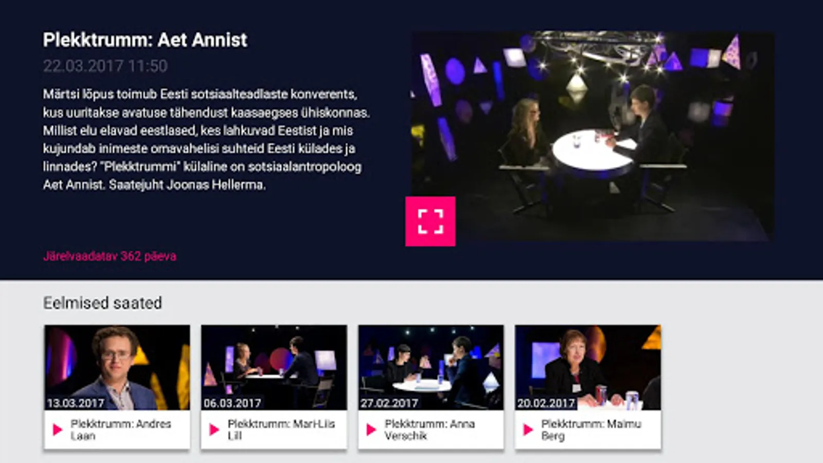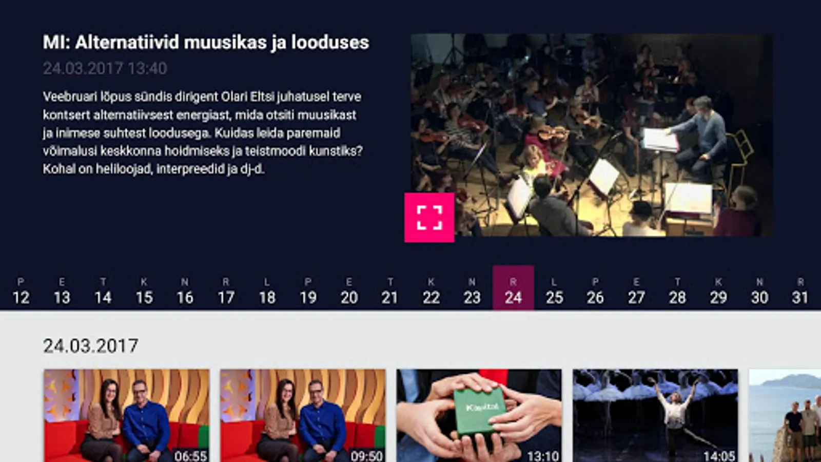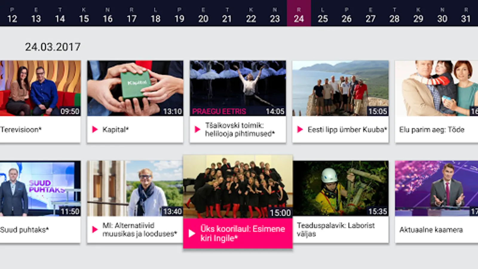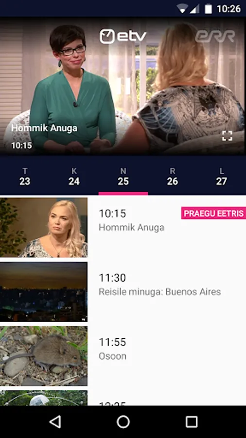 ETV app will help you keep up with life in Estonia, regardless of time or place. Be with us!