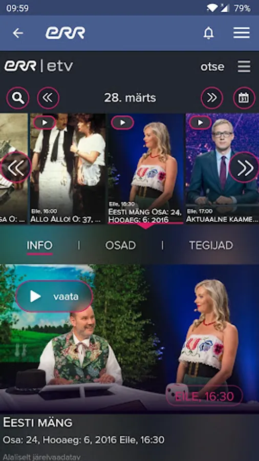 Television and radio broadcasts from Estonian Public Broadcasting and news sources from ETV, ETV2, ETV+, Vikerraadio, Klassikaraadio, Raadio2, Raadio4, Raadio Tallinn.