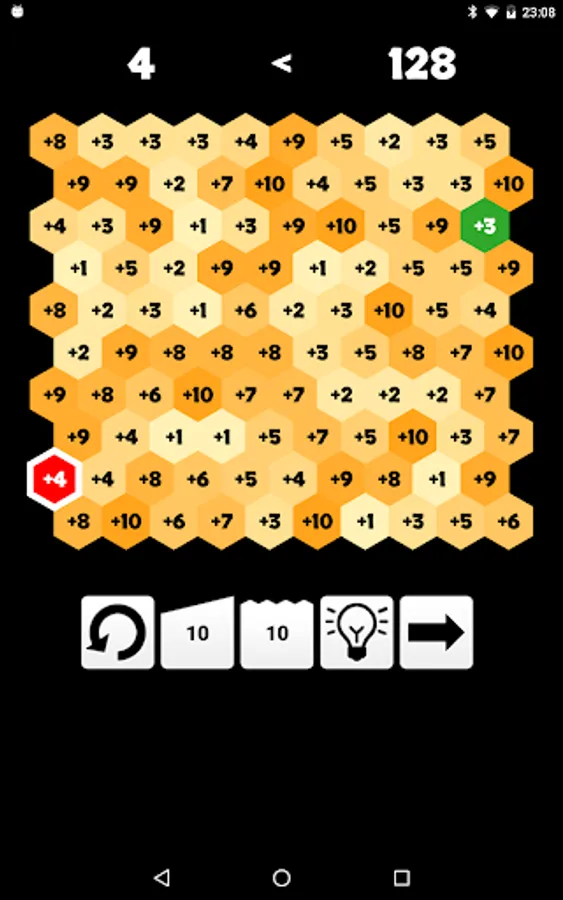 In HexaMath you need to find a path from start to finish - from red to green. Along the way you will sum up numbers. In the end you must have the certain sum, otherwise the chosen path is needs to be corrected.
