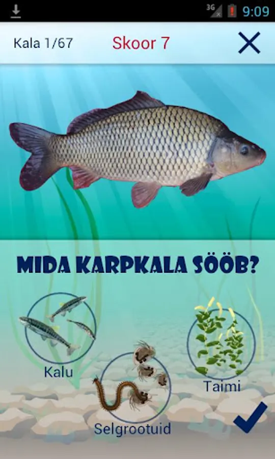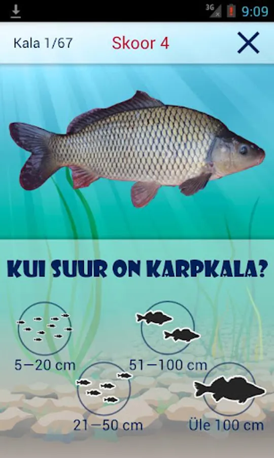 Fish game will test your knowledge of the English major species of underwater life and guide you everyday. In 67t will learn more in the living fish species, with pictures and a generalized distribution maps.