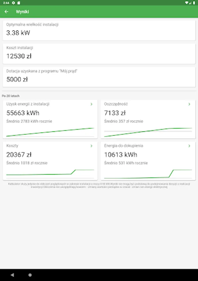 Answer just five questions and the calculator will tell you if installing solar panels will be a good investment. You will also find out if you can apply for a grant from the government program "My electricity".