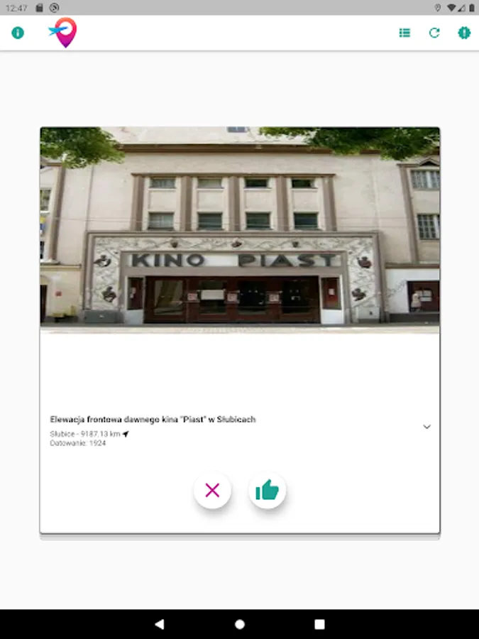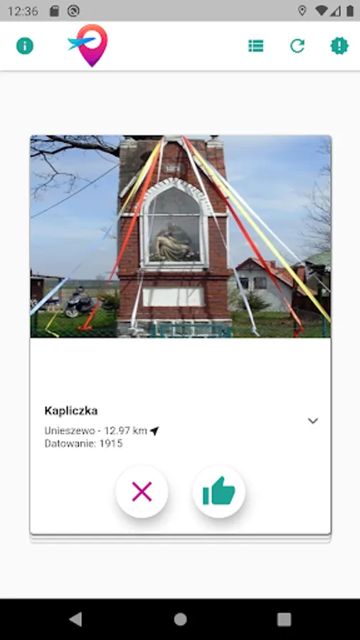 The visitor takes the best from known dating applications. Nice pictures, the possibility of immediate evaluation, friendly interface. You don't have to worry about reciprocity - each monument is a "match". We'll show you interesting buildings in your area.