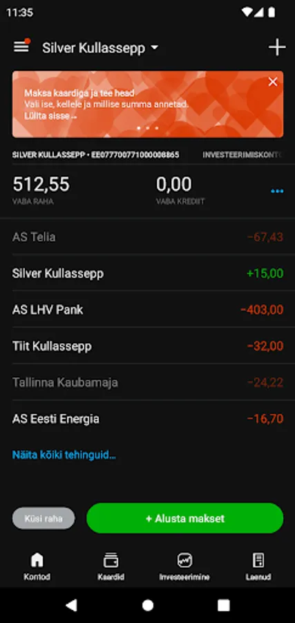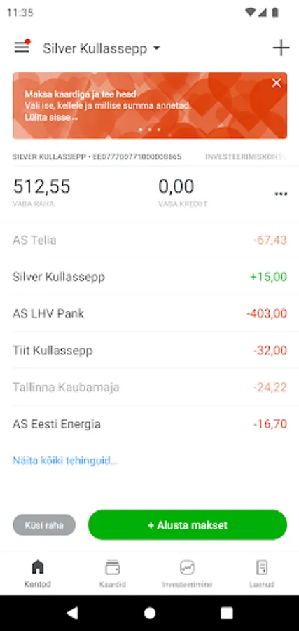 LHV’s easy to use mobile app for dealing with your banking operations conveniently – from opening an account to making daily payments.